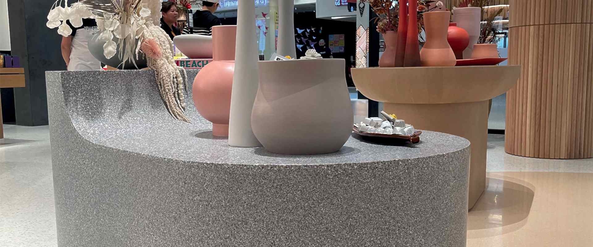 Mermer-çimento karolarımızın çok yönlülüğü, Venedik terrazzo geleneğini çağrıştırırken özel tasarımlara dayalı ilgi çekici geometrik desenlerin yaratılmasına çok uygun hale getirir. Renk tutarlılığı, aşınma direnci ve kolay bakımı, terrazzo zemin kaplamalarını geniş, yoğun trafiğe sahip yüzey alanları için ideal hale getirir.