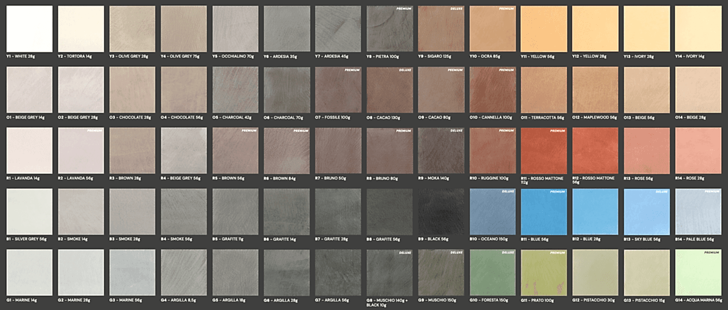 Özel Colour Pack-C Sıvıları sayesinde, mikroçimentonun sonsuz renk kombinasyonlarını elde etmek mümkündür.