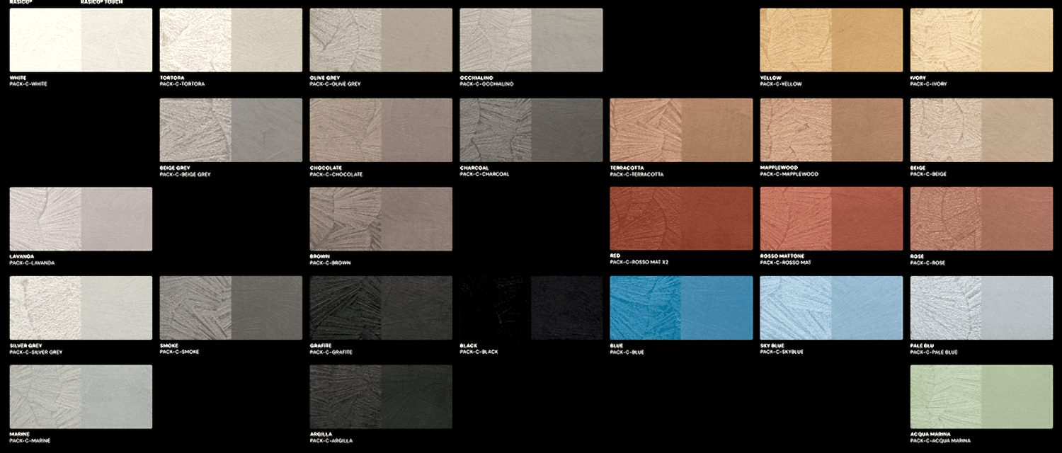 Rasico®, yeni veya mevcut alt tabakalar üzerine mala ile uygulanır ve renk seçimi ve uygulama tekniği ile değiştirilebilen benzersiz yüzeylerle karakterize edilen orijinal tasarımlar sunar.